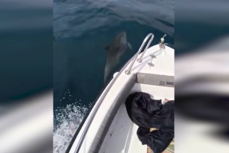Gökçetepe Sahili açıklarında teknelerini iki yunusun takip ettiğini fark eden amatör balıkçılar, cep telefonu kamerasıyla o anları kaydetti.