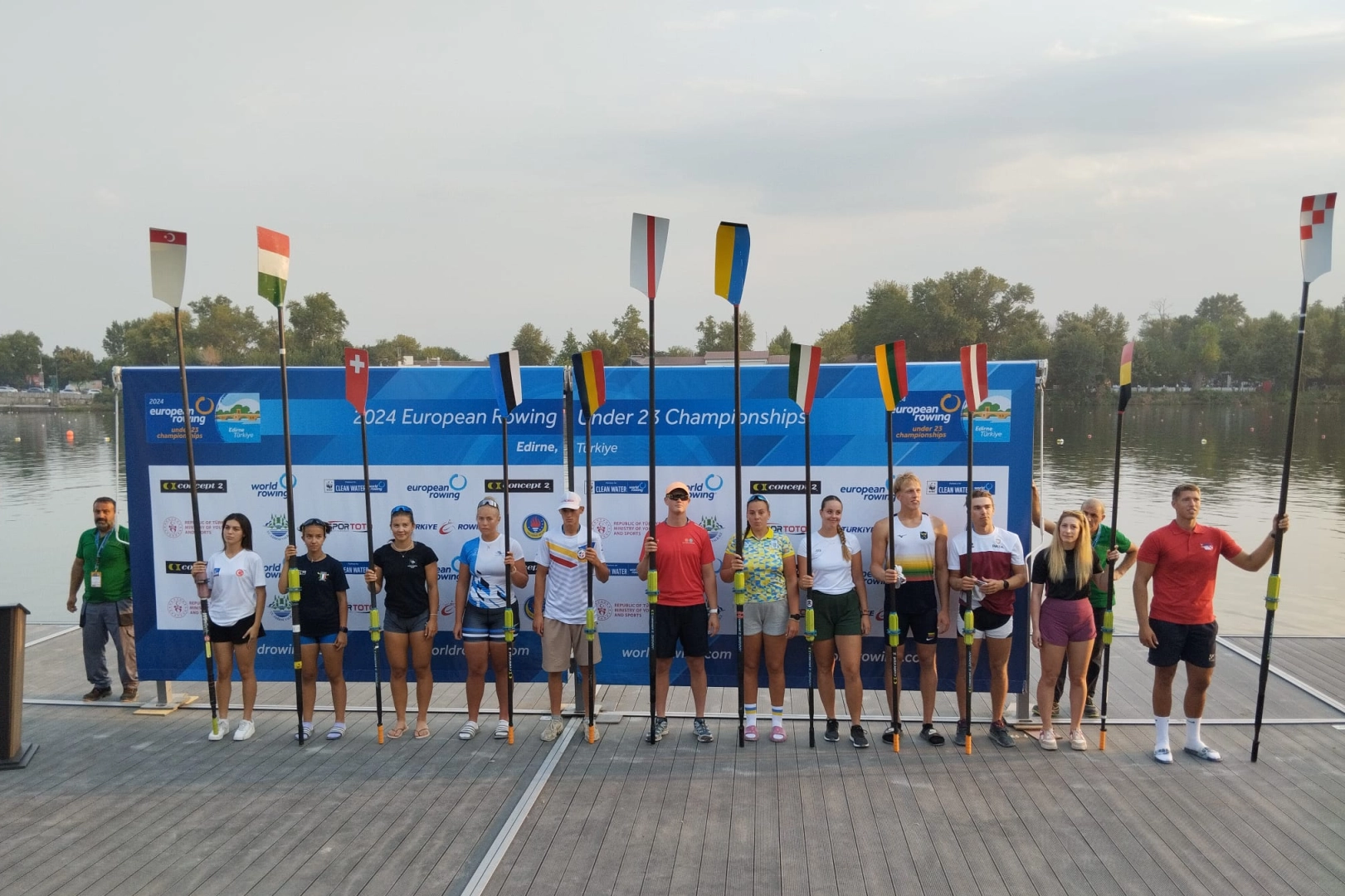 Konuşmaların ardından Avrupa Kürek Federasyonu bayrağı göndere çekildi. 28 ülkeden 600 sporcunun katılacağı yarışlar yarın saat 09.30'da başlayacak.