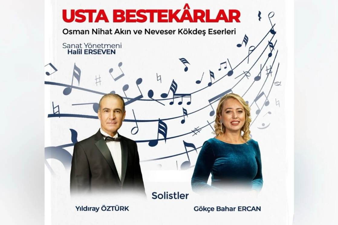 Sanat yönetmeni Halil Erseven yönetimindeki konserde, bestekarlar Osman Nihat Akın ve Neveser Kökdeş eserleri, solistler Yıldıray Öztürk ve Gökçe Bahar Ercan tarafından seslendirilecek.