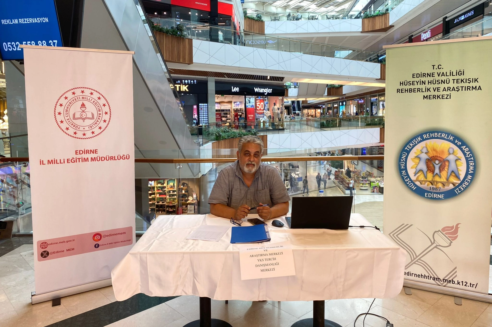 Edirne İl Milli Eğitim Müdürlüğü ve Edirne Valiliği Hüseyin Hüsnü Tekışık Rehberlik ve Araştırma Merkezi işbirliği çerçevesinde Edirne'deki bir alışveriş merkezinde Yükseköğretim Kurumları Sınavı (YKS) Tercih Danışmanlığı Merkezi standı açıldı.