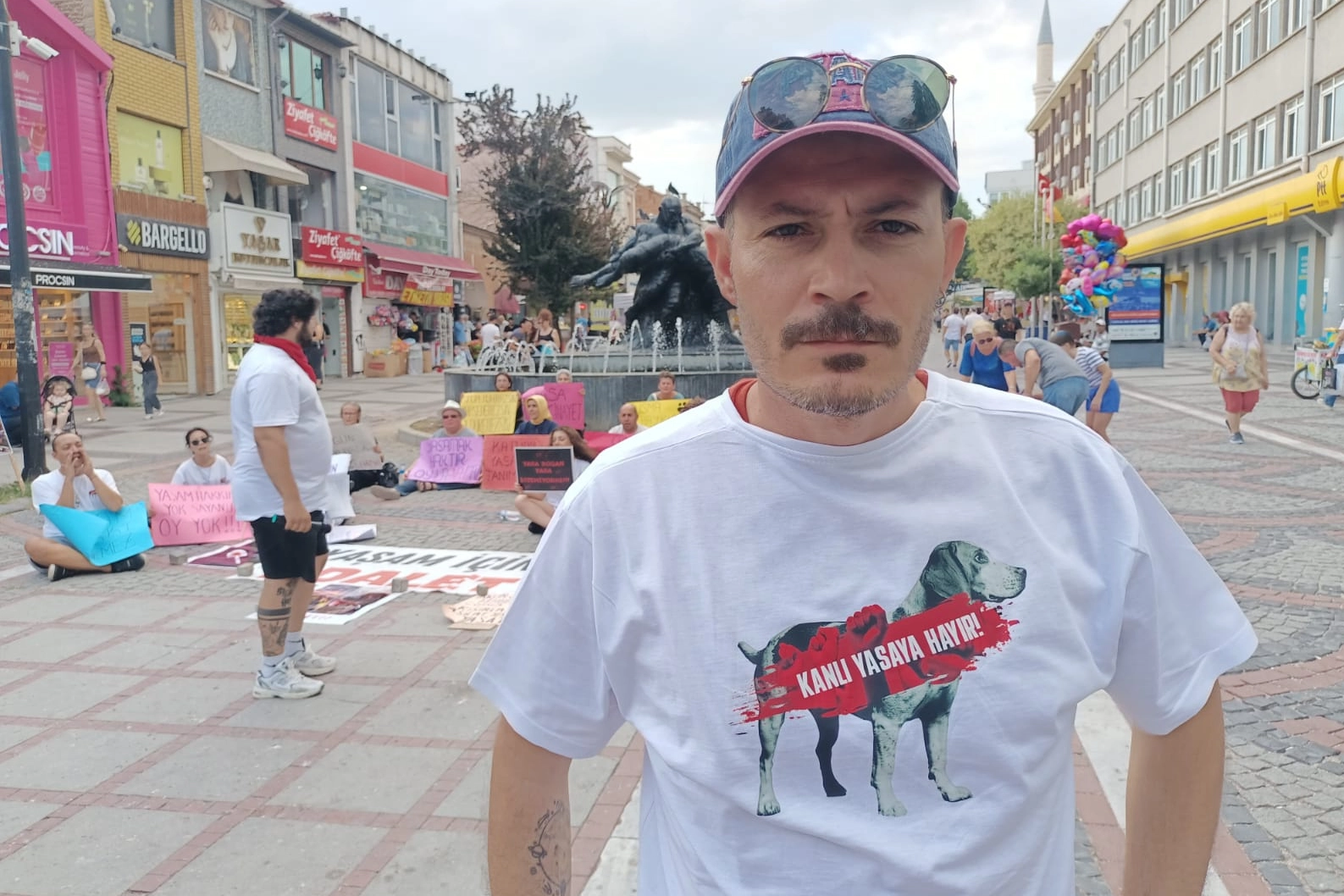 Kentteki bazı meslek odaları, sendikalar ve siyasi partilerin de destek verdiği eylemin 28’inci gününde, yaşam hakkı savunucuları Saraçlar Caddesi’nde oturmaya devam ediyor. Katılımcılar, bugünkü eylemde yasaya karşı hazırladıkları tişörtler ile dikkat çektiler. “Kanlı yasaya hayır” yazılı ve köpek fotoğrafı bulunan tişörtlerle eyleme katılan yaşam hakkı savunucuları, vatandaşları yasaya karşı düzenledikleri imza kampanyasına da davet ettiler.