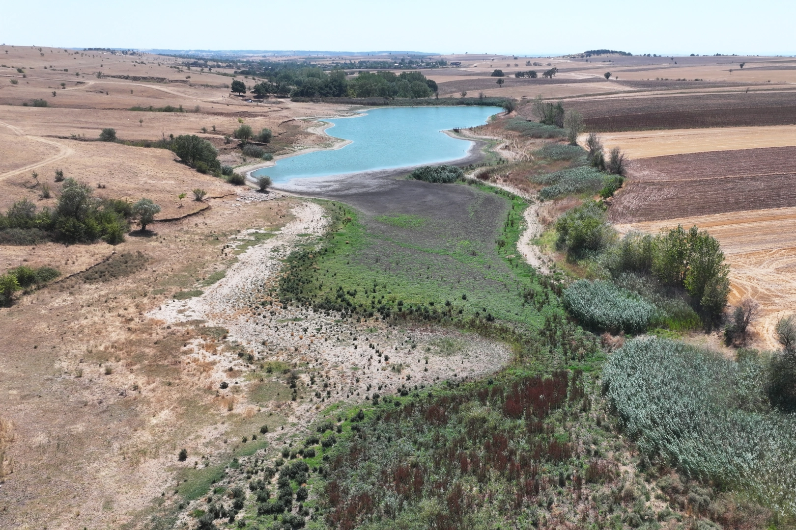 Korucu köyünde tarımsal sulama yapılan ve hayvanların su ihtiyacının karşılandığı göletin doluluk oranı kuraklık nedeniyle mayıs ayından itibaren gerilemeye başladı.