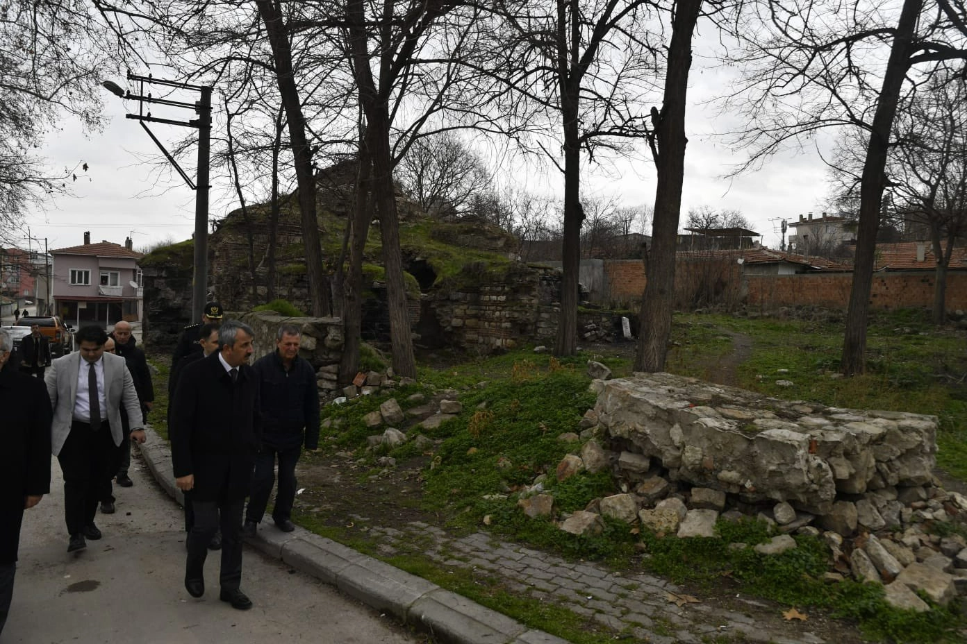 Hamam ve çevresini gezen Vali Sezer, tarihi yapının ihya edilmesi için kurum müdürlerine talimat verdi.