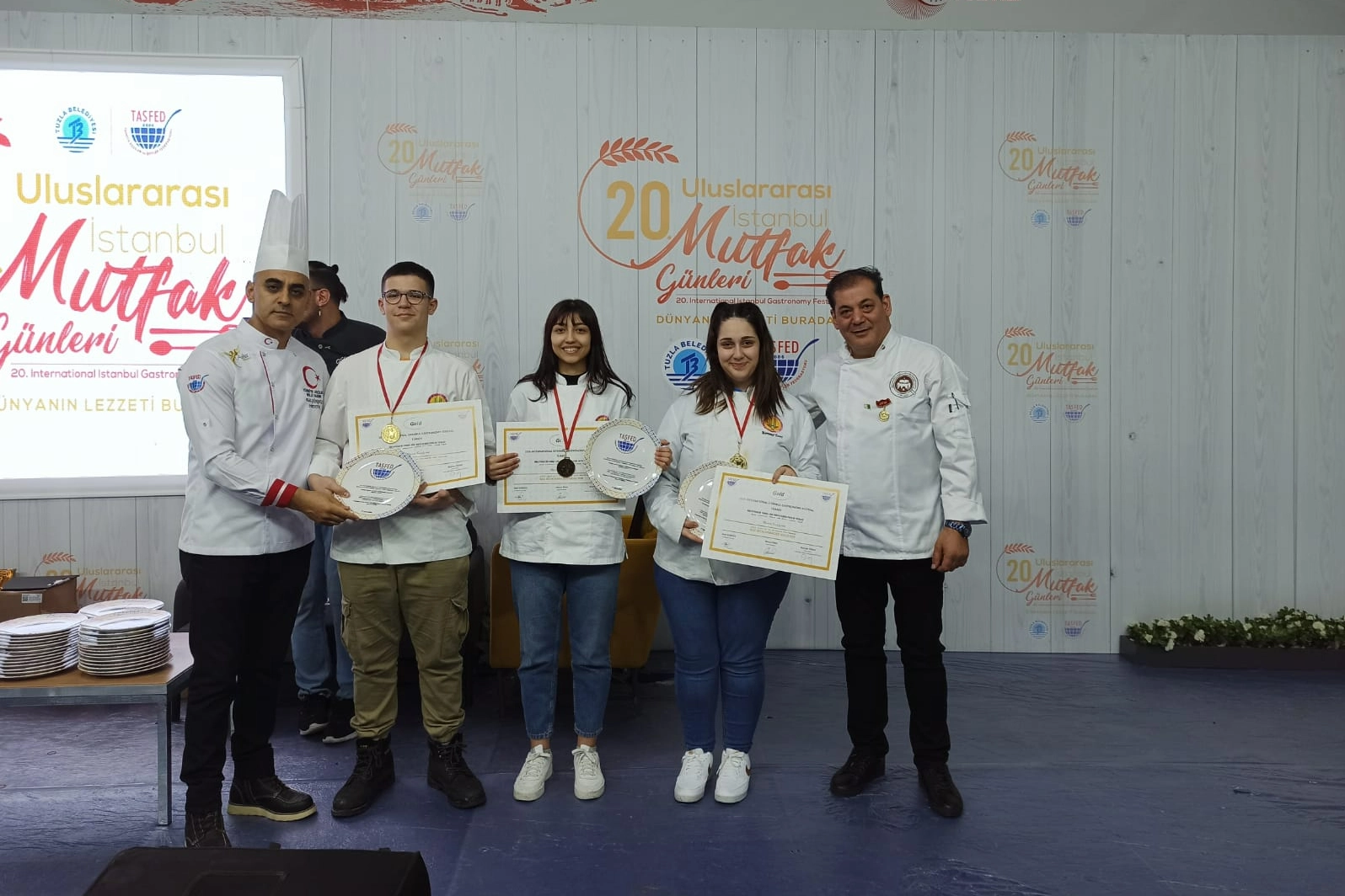 Dünyanın zengin yemek kültürlerinin sergilendiği mutfak günlerinde genç şefler ve öğrenciler, uluslararası düzeyde yarışırken; Dr. Sadık Ahmet Mesleki ve Teknik Anadolu Lisesi öğretmeni Tanju Karabulut ve Yiyecek ve İçecek Hizmetleri Bölümü 11’inci sınıf öğrencileri Arda Kokeralp, Mervenur Ersoy ve İlayda Güler’den oluşan ekip, büyük bir başarıya imza attı.