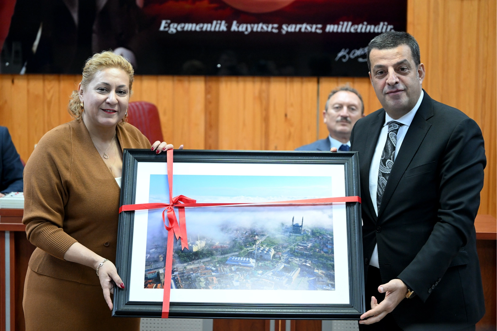 İl Genel Meclisi Başkanı Çiğdem Gegeoğlu'na dronla çekilmiş bir Edirne fotoğrafı hediye eden Soytürk, ardından devam eden yatırımlar hakkında bilgi verdi.