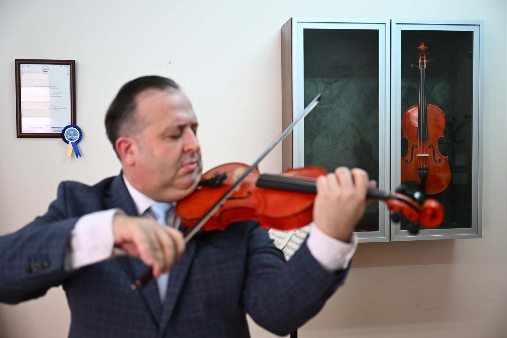 Bu kapsamda Sosyal Bilimler Enstitüsü Müzik Anasanat Dalı yüksek lisans öğrencisi İbrahim Akın tarafından imal edilen keman ve viyola, Edirne kırmızısı rengine boyandı.