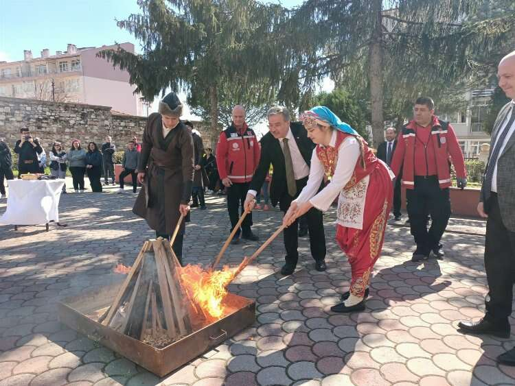 Nevruz ateşinin protokol ve öğrenciler ile birlikte yakılmasıyla başlayan programda örs üzerinde demir dövüldü. Öğrenciler arasında yumurta tokuşturma gibi geleneksel oyunların da oynandığı programda halk oyunları gösterisi sunuldu. Programda ayrıca müzik ekibi tarafından Balkan türküleri de seslendirildi.