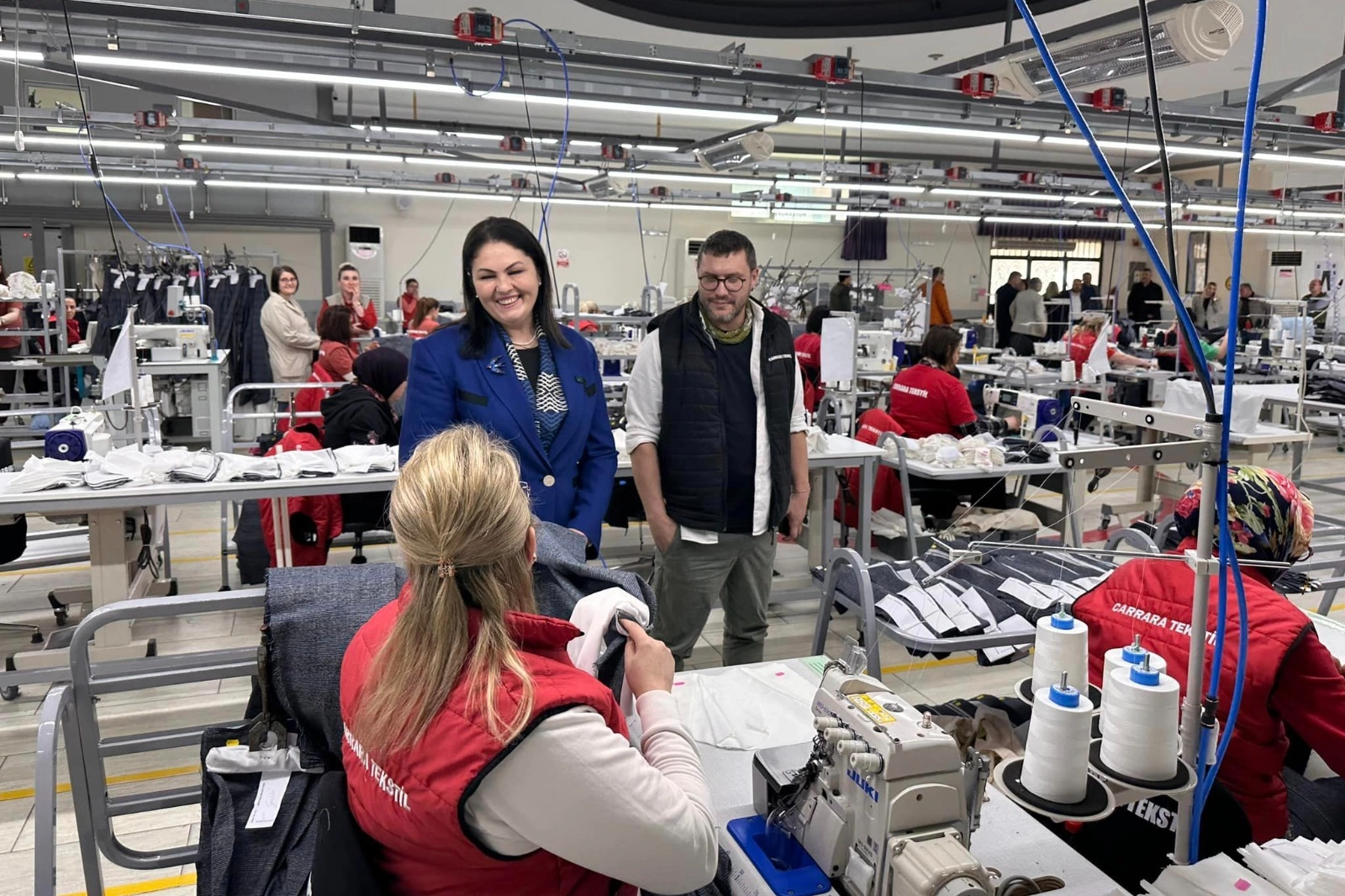 Tekstil firmasında çalışan vatandaşlar ile buluşan İba, “Carrara Tekstil işletmesinin Müdürü Nizam Ciner ve firma çalışanı hemşehrilerimizi ziyaret ettik. Emekleri bereketli olsun, işleri hayırlı olsun” şeklinde konuştu.