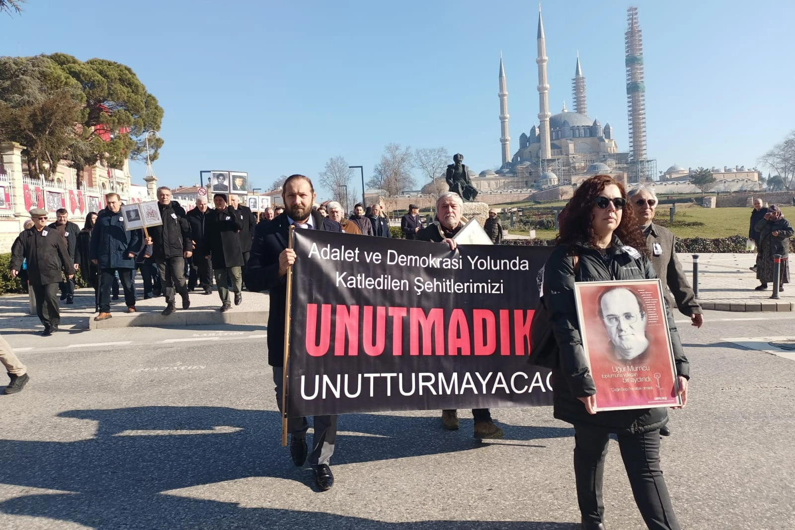 Edirne Belediye binası önünden başlayan kortej yürüyüşü ve Atatürk anıtına çelenk sunulması ile başlayan anma töreni, Uğur Mumcu Parkı’nda basın açıklaması ve Uğur Mumcu anıtına karafil sunulması ile devam etti. Törene; Edirne Belediye Başkan Yardımcısı Selçuk Çakır, Cumhuriyet Halk Partisi (CHP) Edirne Merkez İlçe Başkanı Yücel Balkanlı, ADD Edirne Şubesi Başkanı Celil Özcan ve yönetim kurulu üyeleri, çok sayıda sivil toplum örgütü, siyasi parti, sendika ve oda temsilcileri ile vatandaşlar katıldı.