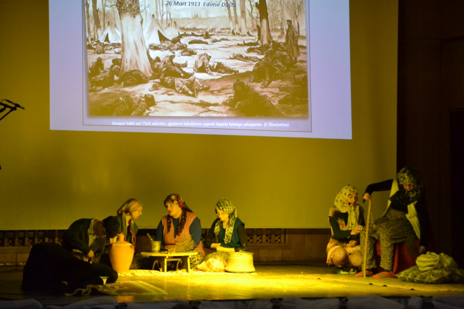 Öz’ün konuşmasının ardından 1. Murat Anadolu Lisesi öğrencileri tarafından hazırlanan Edirne Müdafii Mehmet Şükrü Paşa adlı dramatizasyonun gösterimi gerçekleştirildi. Video gösterimleri ve müzikle desteklenen dramatizasyonda öğrenciler, Edirne’de Balkan Savaşı ve 26 Mart 1913 tarihinde yaşananları yeniden canlandırdılar. Şükrü Paşa ve askerlerinin Edirne savunmasının yanı sıra Edirne halkının özellikle Sarayiçi mevkiinde yaşadığı kara günlerin anlatıldığı dramatizasyonda duygusal anlar yaşandı. Tören, dramatizasyonun ardından sona erdi.