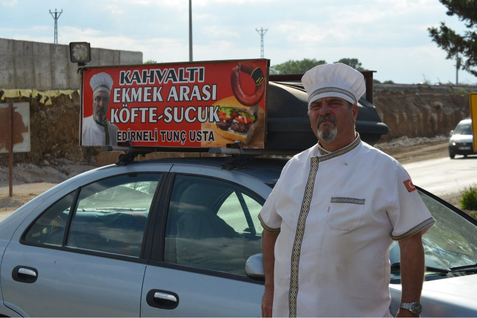 Edirne’de Nilüfer Caddesi’nde şef kıyafetiyle seyyar satıcılık yapan 58 yaşındaki Tunç Elçi, daha önce çeşitli restoranlarda şef aşçı olarak çalıştığını belirterek yaşadığı sorunlar nedeniyle kendi işini kurduğunu söyledi. Kendi işini kuran Elçi, daha önceki çalıştığı restoranlardaki imaj ve saygıyı koruduğunu dile getirdi.