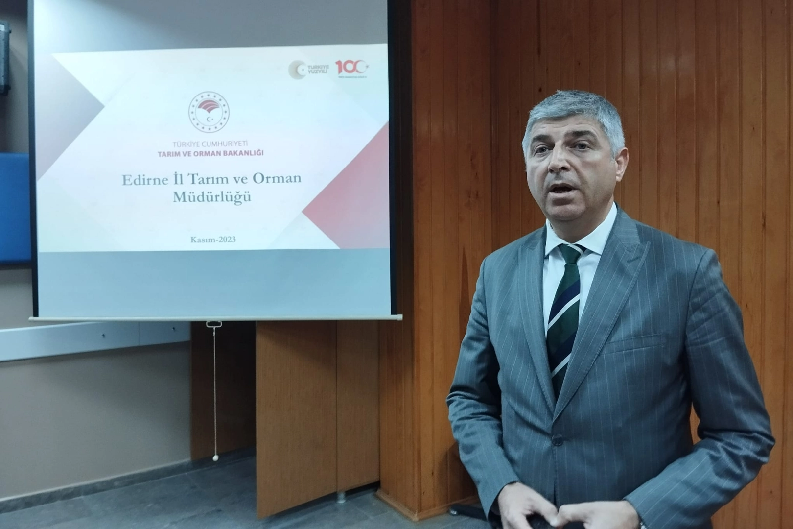 Edirne İl Genel Meclisi 11’inci toplantısı 11’inci birleşimi, meclis salonunda gerçekleşti. Toplantıda Edirne İl Tarım ve Orman Müdürü Atilla Bayazıt, müdürlüğünün çalışmaları hakkında bilgiler verdi. Bayazıt, Edirne’de ÇKS kayıtlı 27 bin 7 çiftçi olduğunu, işlenen tarım alanının 341 bin 108 hektar, orman alanının 103 bin 14 hektar, tarım dışı alanın 112 bin 959 hektar, çayır ve mera alanının ise 57 bin 419 hektar olduğunu söyledi. Önemli Tarla Ürünleri’nde ise Edirne’nin çeltik üretiminde 382 bin 189 ton ile yüzde 40,2’lik oranla Türkiye’de birinci, yine aynı şekilde kanola üretiminde de 30 bin 387 ton ve yüzde 20,3’lük oranla birinci olduğunu söyledi. 325 bin 812 ton ve ülke üretiminin yüzde 13,9’unu karşılayarak ayçiçeği üretiminde Türkiye’de 2’nci, buğdayda da 522 bin 535 ton ve yüzde 4’lük oran ile Türkiye 7’ncisi olduğunu belirtti.