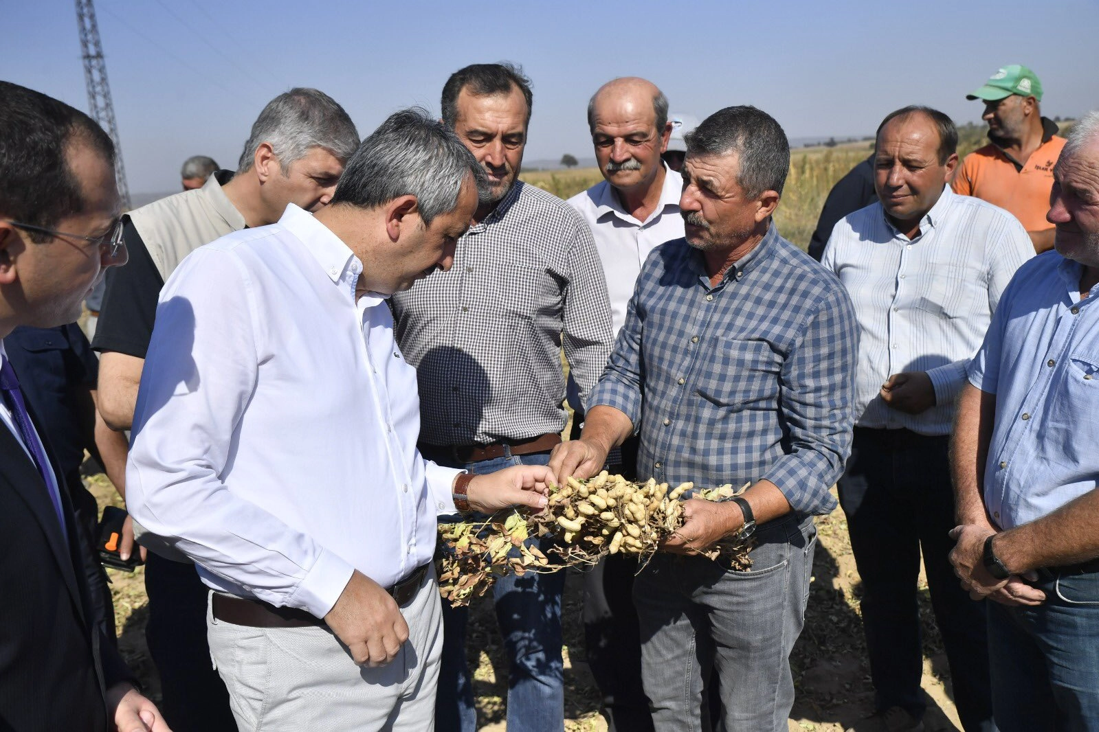 Sezer, Alibey köyünde düzenlenen etkinliğe katılarak fıstık hasadını izledi, Tarım ve Orman İl Müdürü Atilla Bayazıt'tan üretim, hasat ve rekolte hakkında bilgi aldı.