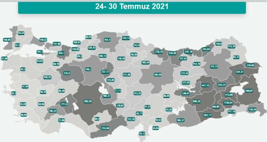 Tüm dünyayı ve ülkemizi etkisi altına alan Covid-19 salgınının iller bazındaki açıklanan vaka oranlarına göre geçtiğimiz hafta 100 bin nüfusa karşılık gelen vaka oranları Edirne'de 63,47, Tekirdağ' da 27,25, Kırklareli'nde 49,49 iken bu haftaki vaka haritasında artışların olduğu görüldü. 24-30 Temmuz tarihleri arasında 100 bin nüfusa karşılık gelen toplam vaka verilerine göre Kırklareli 94,54, Tekirdağ 67,9, Edirne 159,65'e çıktı.