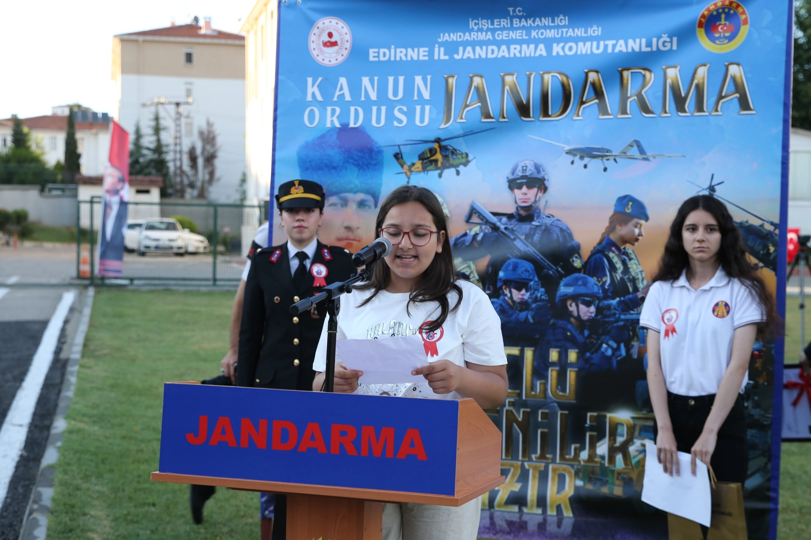Lalapaşa Cumhuriyet Ortaokulu 5. sınıf öğrencisi Özen, Jandarma Teşkilatının 185'inci kuruluş yıl dönümü kapsamında hazırlanan "Kanun Ordusu Jandarma 185 Yaşında" konulu şiir yarışmasına katıldı.