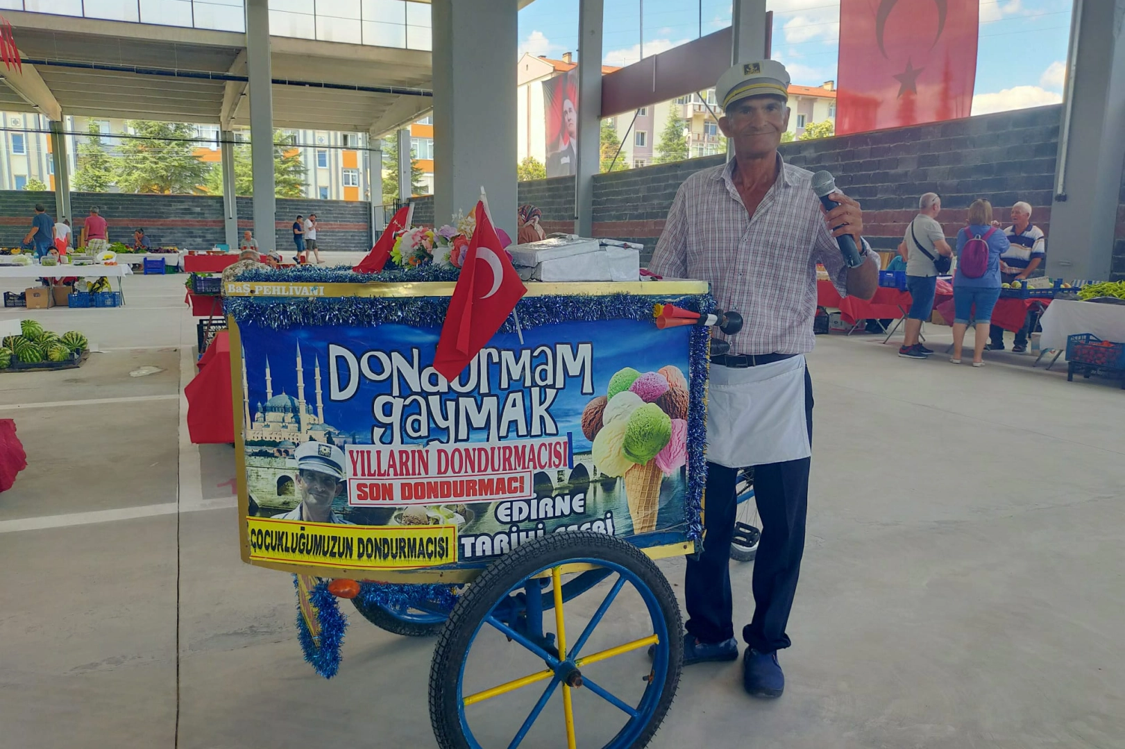 Edirne'de yaşayan 69 yaşındaki Çetin Dada, bisikletine bağladığı seyyar arabasıyla 48 yıldır Edirne'de seyyar dondurma satıyor.