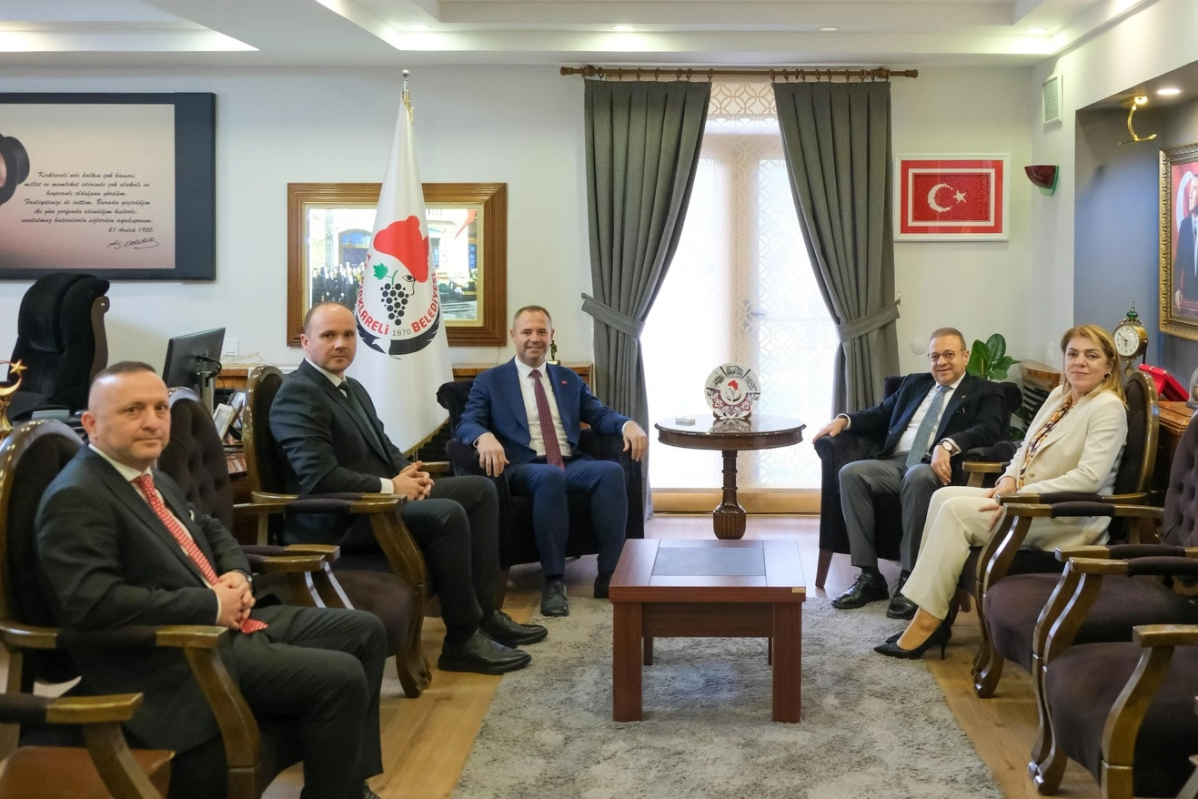 Kırklareli Belediyesi’nde gerçekleşen ziyarette, Kırklareli Belediye Başkanı Derya Bulut, Kırklareli Üniversitesi Rektörü Prof. Dr. Rengin Ak ile birlikte Egemen Bağış’ı kabul etti.
