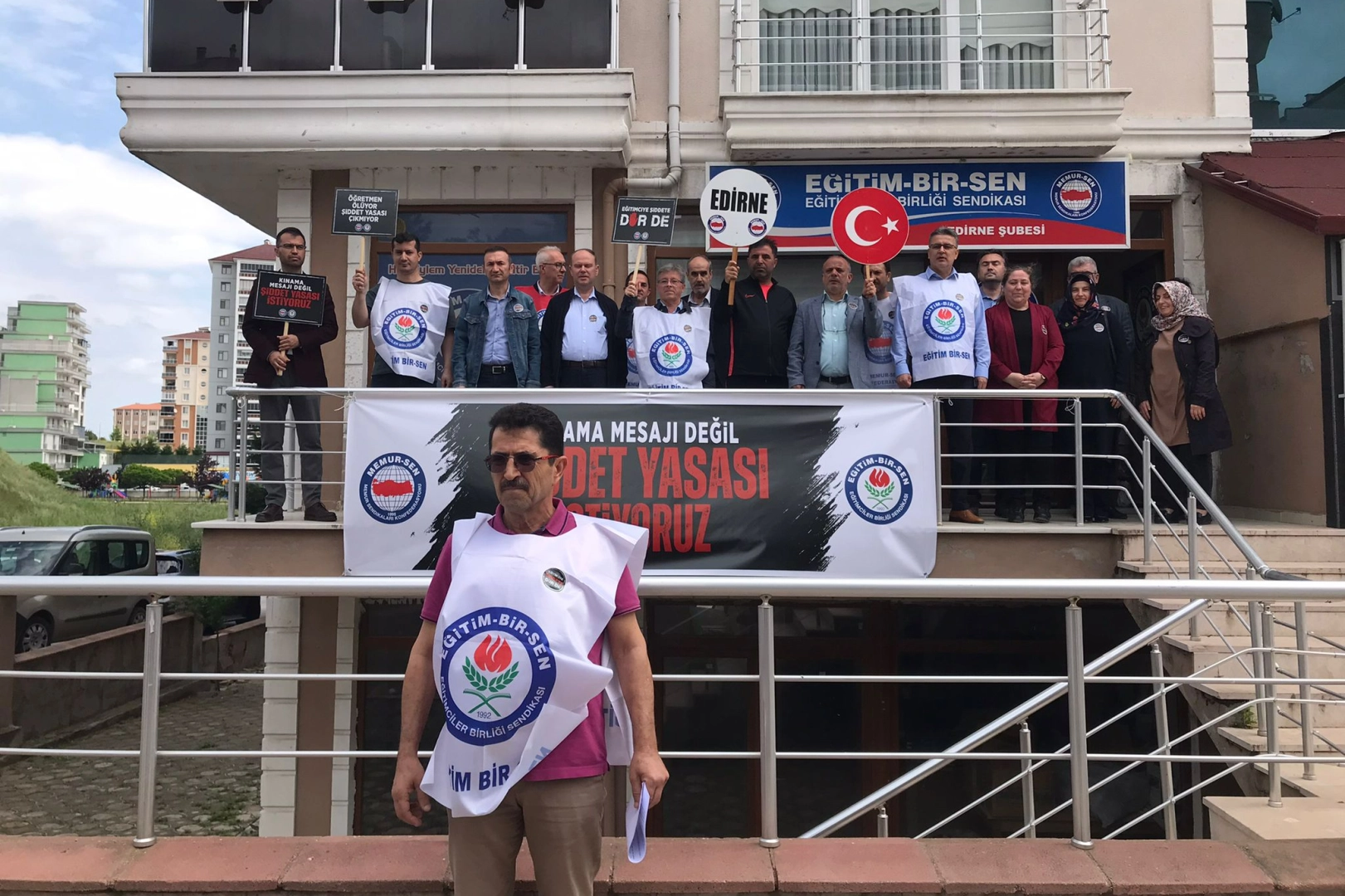 Edirne Eğitim Bir Sen, eğitim çalışanlarına yönelen ve ölümle sonuçlanan saldırılar sebebiyle basın açıklaması yaptı. Sendika üyeleri adına basın metnini okuyan Eğitim Bir Sen İl Başkanı Erdinç Dalgıç, eğitim çalışanlarına yönelik şiddete karşı yasal düzenleme istediklerini söyledi. Dalgıç, geçtiğimiz günlerde İstanbul’da bulunan bir okulda, okul müdürüne ilişkin yapılan saldırının, göz göre göre geldiğini ve buna yönelik yasanın ve çözümün bulunmadığını belirtti. Öğretmenlerin kendilerine yönelik şiddet olayları ile anılır hale geldiğini belirten Dalgıç, bu konunun yaygın bir toplumsal sorun haline geldiğini ifade etti.