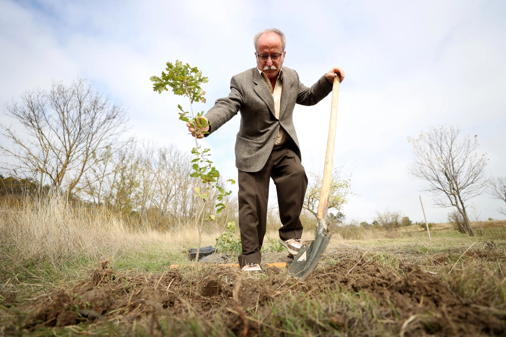 Doğa sevgisi her geçen gün artan Aladağ, ilerleyen yaşına rağmen fidan dikmekten vazgeçmedi.