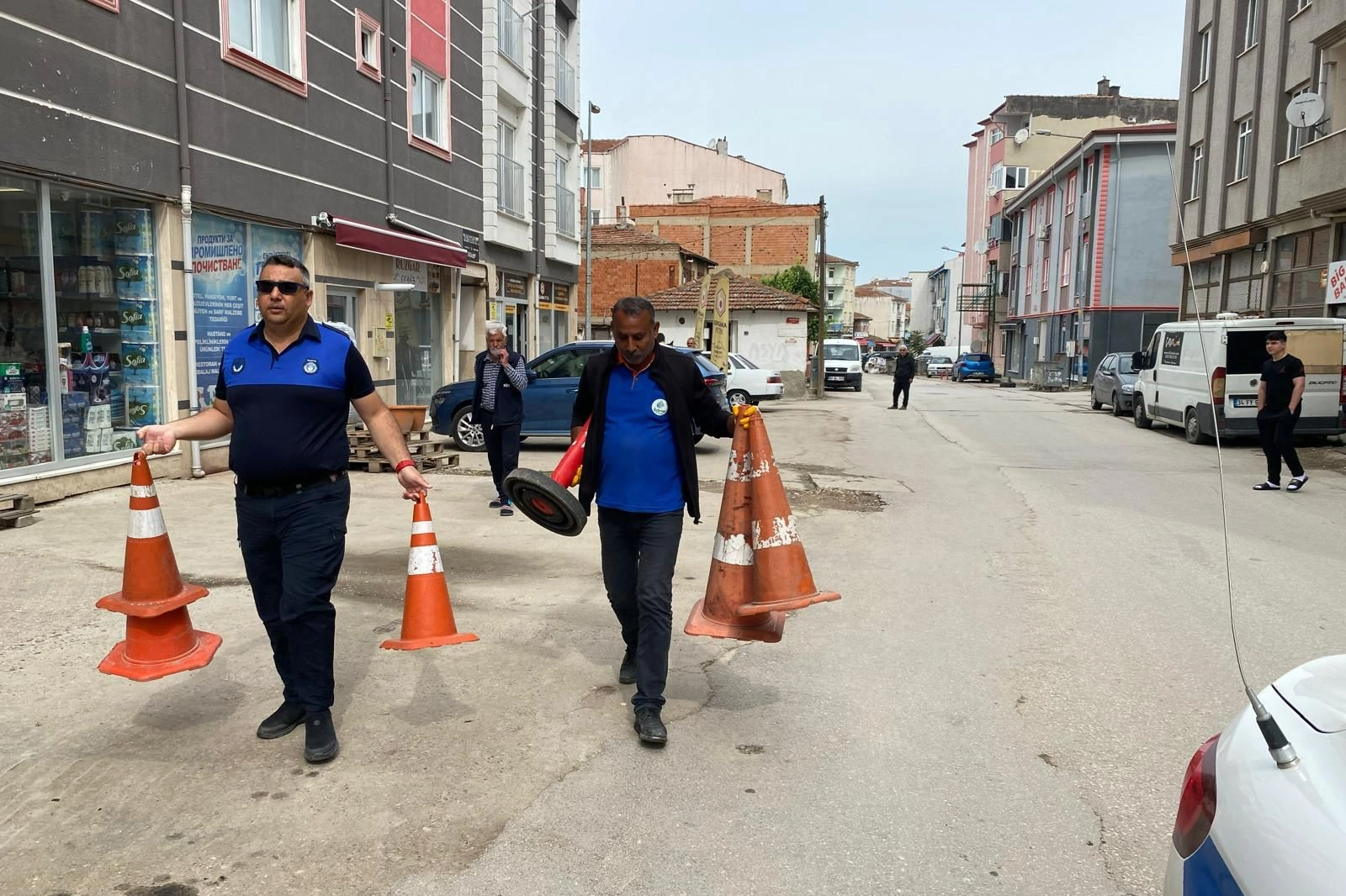 Toplamda 57 adet duba, 3 adet tabela, içine beton dökülmüş 11 adet teneke, reklam levhaları, eski elektrik kablo ahşap makaraları, çiçek saksıları ve parke taşları vb. olmak üzere Yol Ve Kaldırım Üzerinde trafik akışını ve yayaların seyrini güçleştirecek şekilde izinsiz konulan esnafın ve diğer iş yerlerinin sahiplenmediği malzemeler Edirne Belediyesi Temizlik İşleri Müdürlüğüne ait kamyon ile toplanarak Ulaştırma Müdürlüğü bahçesine çekildi.