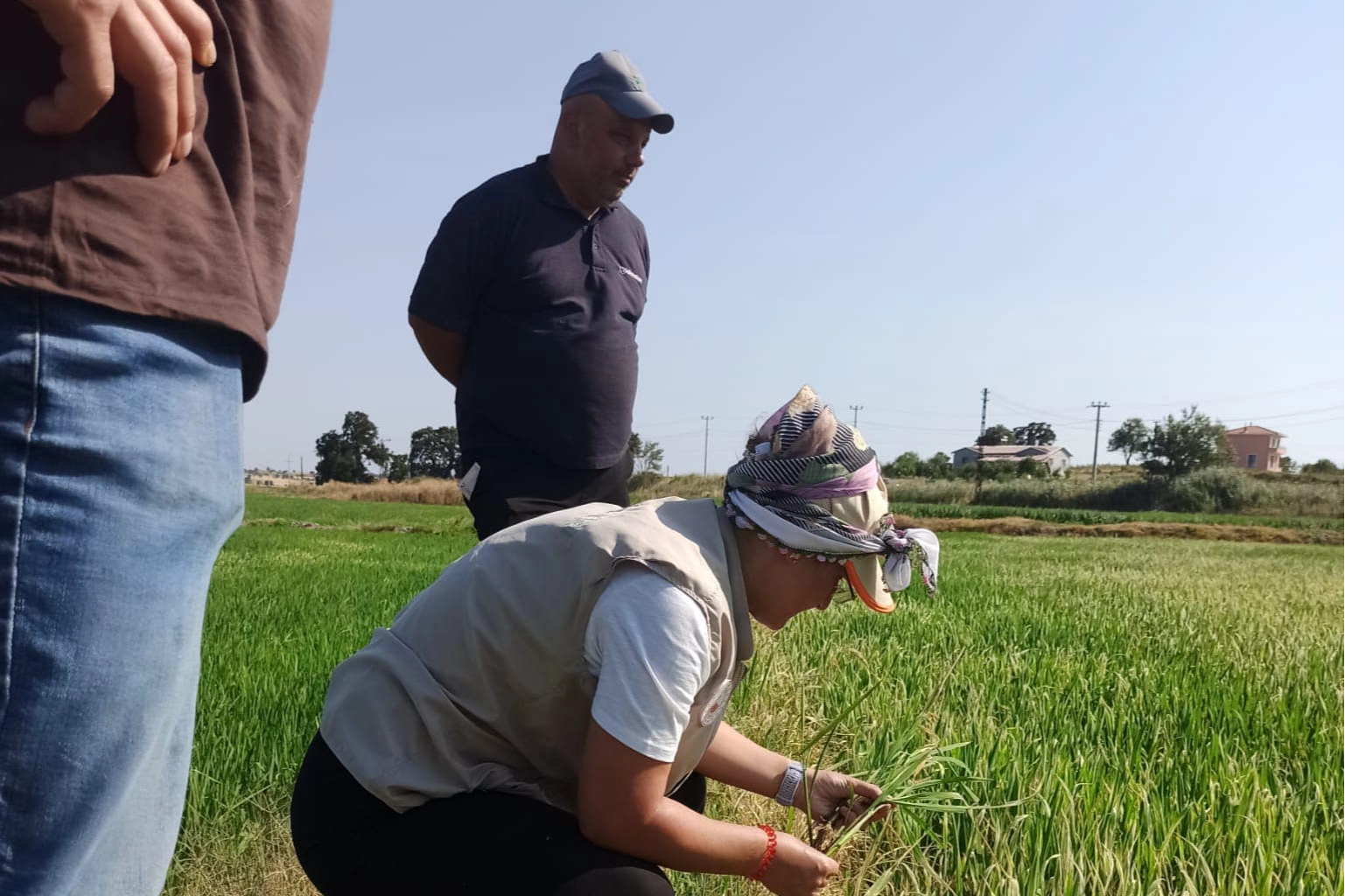 Edirne Enez İlçe Tarım ve Orman Müdürü Simge Ünlüsoy, çeltik ekilişi yapılan tarım alanlarında incelemelerde bulundu.