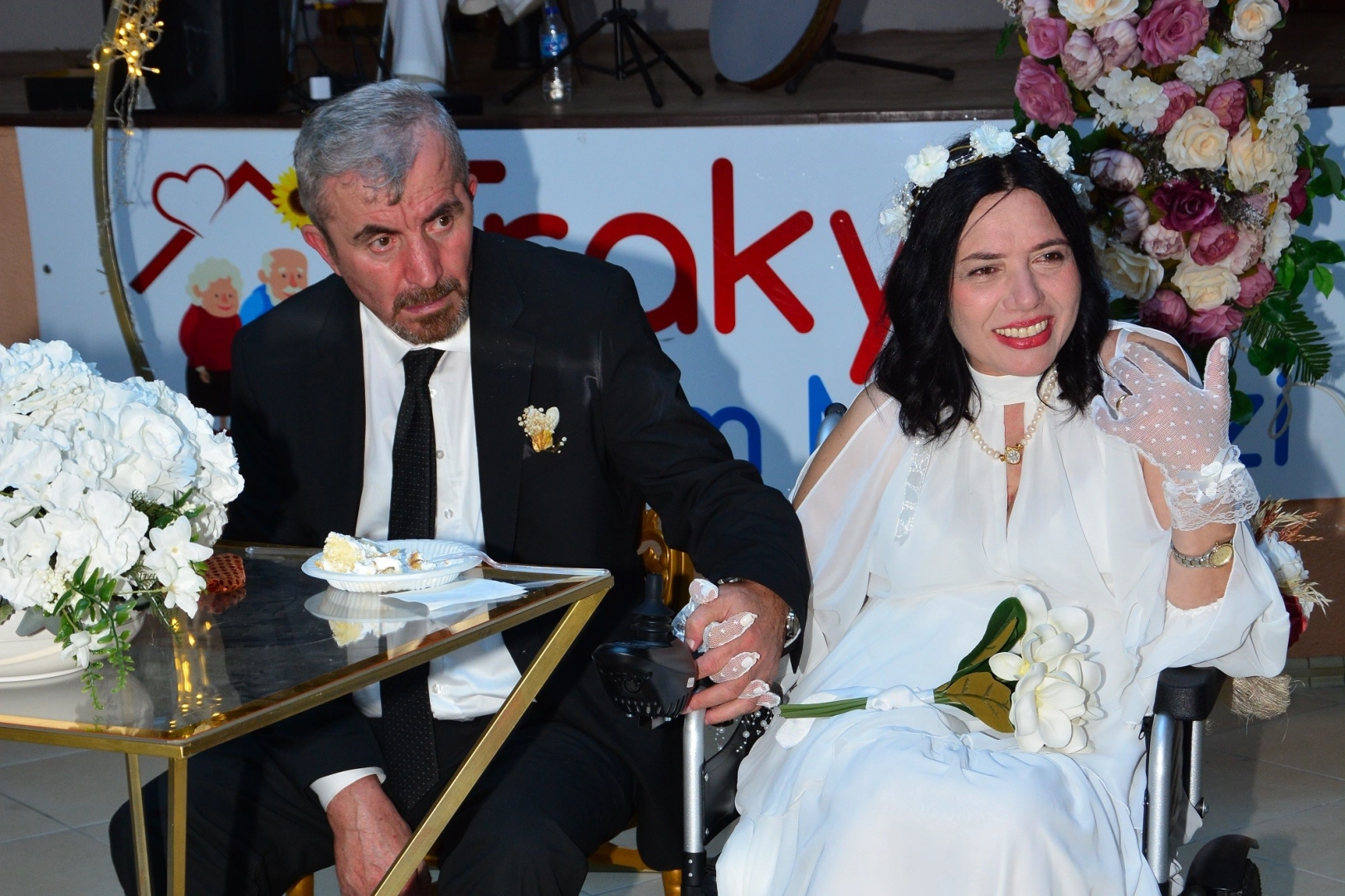 Tekirdağ'ın Çerkezköy ilçesinde bir bakım evinde kalan engelli çift, büyük bir mutlulukla hayatlarını birleştirdi. 57 yaşındaki Seher Uzbiçen ve 60 yaşındaki Ahmet Tatar, hem nikahları hem de düğünleriyle mutluluklarını taçlandırdı.