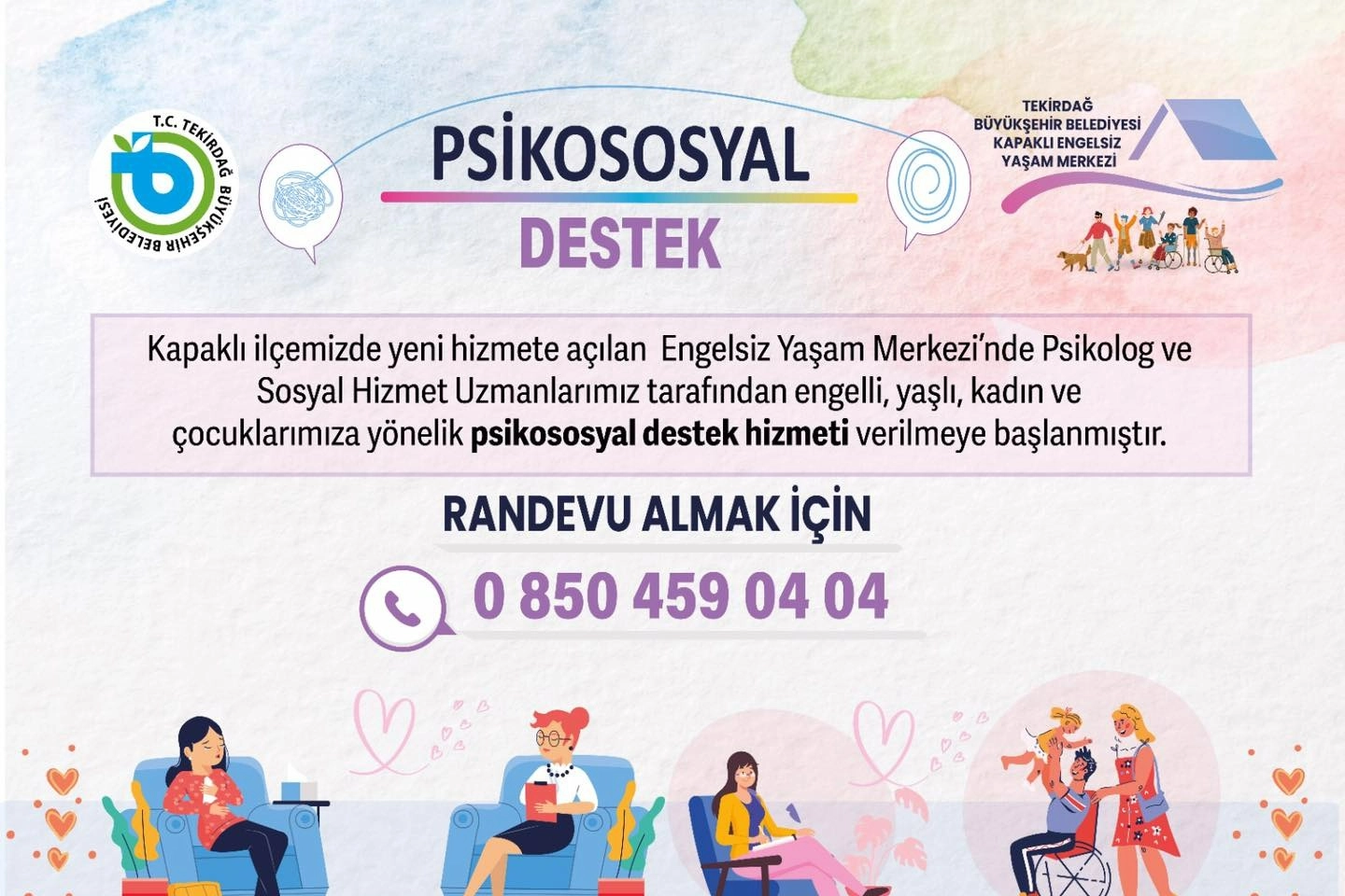 Tekirdağ’ın Kapaklı Belediyesi sosyal medyadan yaptığı paylaşımda yeni hizmete açılan Engelsiz Yaşam Merkezi’nde psikolog ve sosyal hizmet uzmanları tarafından engelli, yaşlı, kadın ve çocuklara yönelik psikososyal destek hizmeti verilmeye başlandığını açıkladı.
