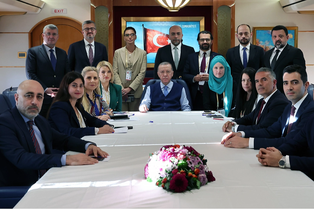 Cumhurbaşkanı Recep Tayyip Erdoğan, Katar ziyareti dönüşünde uçakta gazetecilerle söyleşi gerçekleştirdi. Katar ziyaretine yönelik değerlendirmede bulunan Erdoğan, Katar Emiri Şeyh Temim bin Hamad Al Sani’nin davetine icabetle Doha’ya gerçekleştirdiği ziyareti tamamladıklarını belirterek, ”2014 yılında kurduğumuz Yüksek Stratejik Komitemizin dokuzuncu toplantısını başarıyla tamamladık. Ziyaretimizin ikinci gününde dönem başkanı Katar’ın onur konuğu olarak Körfez İşbirliği Konseyi 44. Zirvesi’ne katılarak hitapta bulundum. Komite toplantımız çerçevesinde yaptığımız görüşmelerde ikili ilişkilerimizi tüm boyutlarıyla gözden geçirdik. Katar’la ticaret hacmimiz yüzde 14’ün üzerinde bir artışla 2 milyar doları aştı. Katar’la ticaretimizin ve yatırımlarımızın daha da artırılması konusunda mutabık kaldık” dedi.
