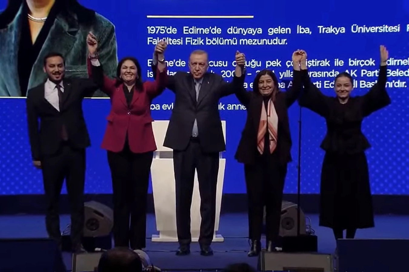 Erdoğan, toplantıda AK Parti’nin Edirne Belediye Başkan adayını da açıkladı. Erdoğan, AK Parti Edirne Belediye Başkan adayının, en son Edirne İl Başkanı görevinde olan Belgin İba olduğunu duyurdu. İba ile birlikte sahneye AK Parti Edirne Milletvekili Fatma Aksal, İl Kadın Kolları Başkanı Nergis İnce ile Milliyetçi Hareket Partisi (MHP) Edirne İl Başkanının da davet edilmesi dikkat çekti. Erdoğan, diğer tüm adayların 15 Ocak’ta seçim beyannamesi ile birlikte açıklanacağını söyledi.
