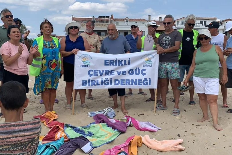 Dernek üyeleri, Erikli sahilinde bir araya gelerek, ‘Sahiller halkındır, kiralanamaz’ sloganı eşliğinde havlu attılar. Dernek Başkanı Seher Kurçeren, tüm Türkiye’deki deniz kıyılarında eşzamanlı gerçekleşen eylemde basın açıklamasını okudu.