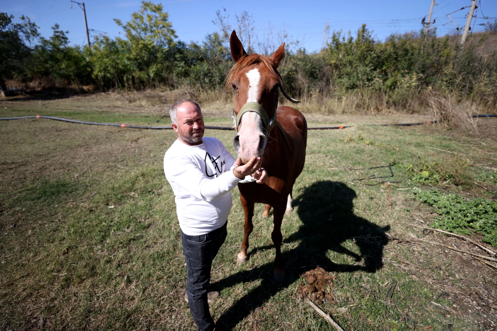 Sağ bacağına protez takılan Akay, şampiyon jokeylik kariyerinin ardından bu kez şampiyon atlar yetiştirmek için çalışıyor.