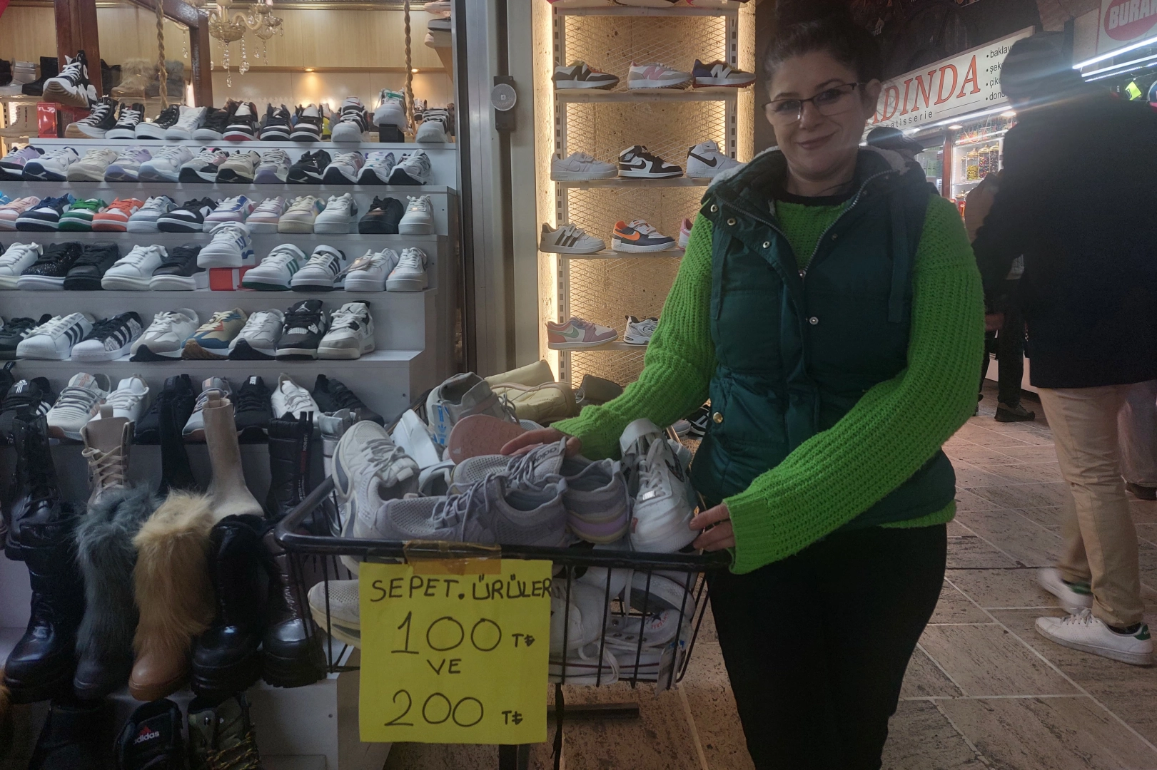 Alipaşa Çarşısı esnafı Alev Kantur, ayakkabı fiyatlarında indirime gittiğini söyledi. Kantur, çarşıdaki azalan hareketliliği hızlandırmak için sezon sonu indirimleri yaptığını söyledi. Kantur, vatandaşların bütçesine de katkı sağlamaktan dolayı mutlu olduğunu dile getirdi.