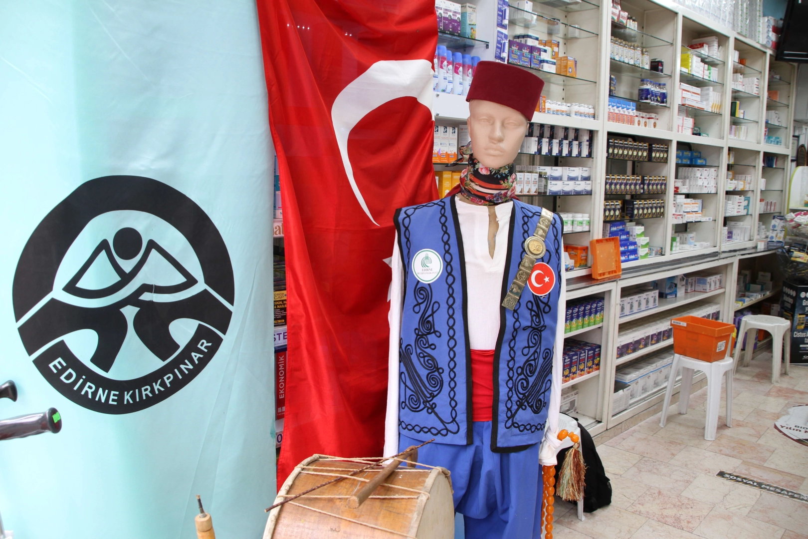 Edirne'de bazı esnaflar kentin turizmine ve ekonomisine katkı sağlayan Kırkpınar'ın tanıtılması için dükkanlarında ayrı bir köşe oluşturdu.