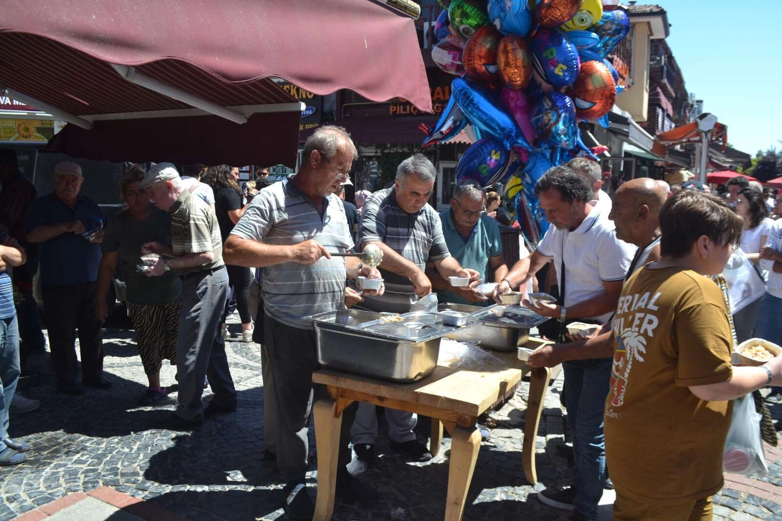 Edirne’nin Saraçlar Caddesi esnaflarından Yıldırım Kuruyemiş’in sahibi Ahmet Sağlık, her yıl aşure ayında dükkanının önünde vatandaşlara aşure ikramı yapıyor. Ahmet Sağlık bu yıl da geleneği bozmayarak Saraçlar Caddesinde bulunan kuruyemiş dükkanının önüne aşure kazanlarını koydu ve yoldan geçen vatandaşlara aşure dağıttı.