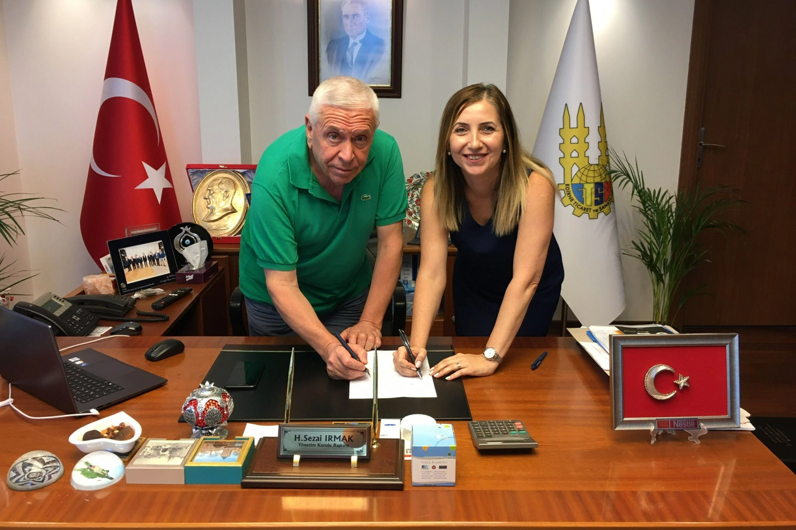 ETSO'dan yapılan açıklamaya göre, ETSO Yönetim Kurulu Başkanı Sezai Irmak ve İş Bankası Binevler Edirne Şube Müdürü Çiğdem Kırım, odada düzenlenen toplantıda protokolü imzaladı.