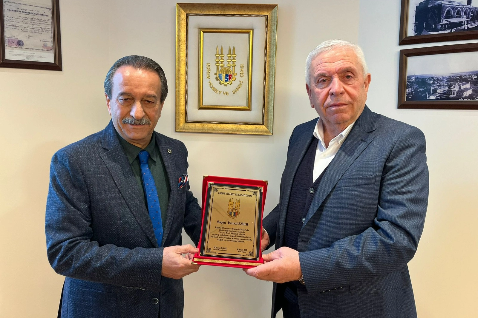 Edirne Ticaret ve Sanayi Odası’nda (ETSO) 1983 - 2024 yılları arasında Ticaret Sicili Müdürü olarak görev yapan İsmail Eser emekli oldu. Eser’e hizmetlerinden dolayı ETSO yönetimi tarafından plaket verildi.