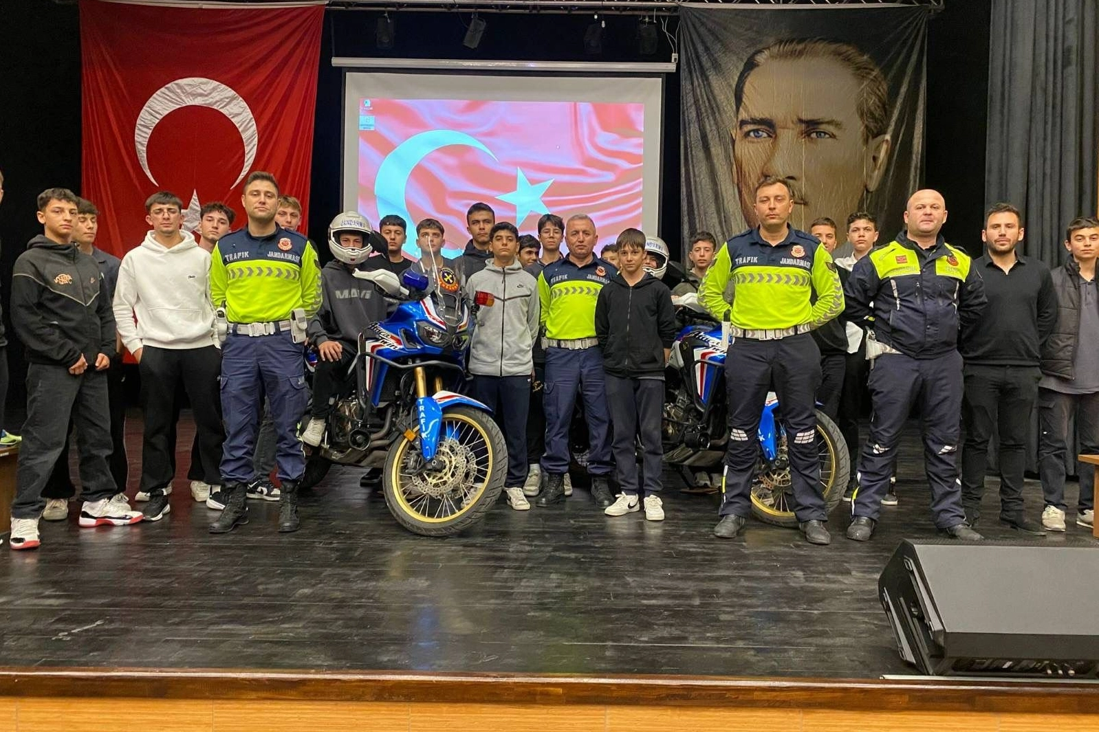 Çanakkale İl Jandarma Komutanlığı Trafik Şube Müdürlüğü ve Ezine İlçe Jandarma Komutanlığı ekiplerince motosiklet sürücülerine yönelik eğitimler verildi. ‘Bir Kural Bir Ömür Kampanyası’ çerçevesinde düzenlenen eğitim Atatürk Kültür Merkezinde gerçekleştirildi. Motosiklet kullanıcılarına; "Kaskımla Güvendeyim Projesi" ve "Bir Kural Bir Ömür" kampanyaları, genel trafik kuralları, güvenli sürüş ve emniyet kemerinin önemi, alkol ve uyuşturucu ve uyarıcı madde kullanmanın sürücüler üzerindeki olumsuz etkileri konularında bilgilendirmeler yapıldı. "Pasif Tedbirler" olarak, motosiklet kullanıcılarının kullandığı mont, gözlük, sürtünmeye karşı koruyucu özelliği olan özel dizlik ve kolluklardan oluşan koruyucu ekipmanların önemi ile ilgili görseller kullanılarak farkındalık oluşturulmaya çalışıldı.