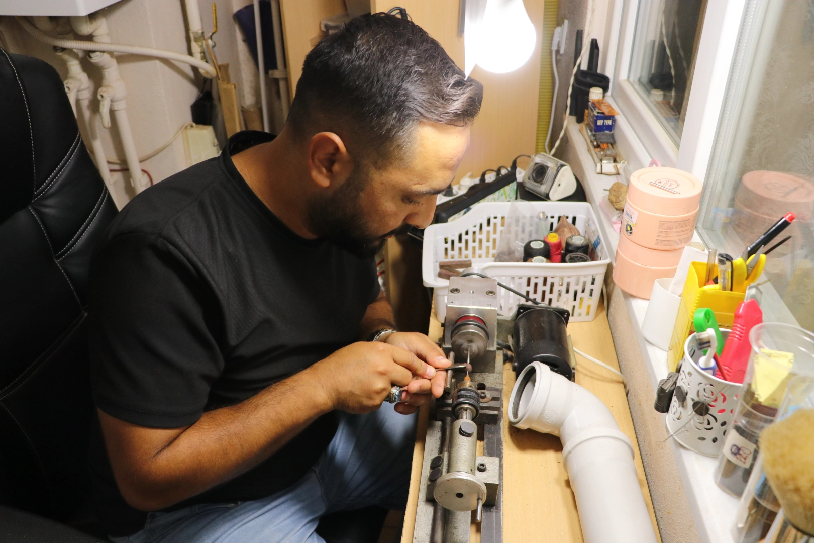 Ökünç, bu süreçte eşinin kendisine verdiği desteğin çok önemli olduğunu belirterek, "İlk tespih tanesini 14 saat tornanın başından kalkmadan yapmaya çalıştım. Onu da tam olarak yapamadım. Atölyeye girdiğim zaman dünyayla bağlantımı kesiyorum. Bu olaylardan sonra eşimi ihmal ediyordum. O benden desteğini hiç esirgemedi. İlk yaptığım tespihi eşime hediye ettim." diye konuştu.