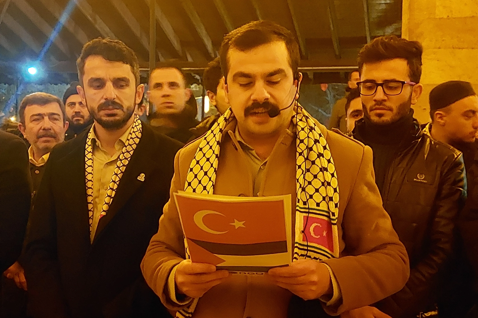 Dernek adına konuşan Muhammet Şahin, "Üç aya yakın bir süredir Filistinli Müslümanlara yönelik her türlü zulmü işleyen İsrail rejimi geçtiğimiz akşam cinayetlerine bir yenisini daha ekledi. Hamas karşısında diz çöken ve içerisinde bulundukları acziyeti sivil katliamlarıyla örtmeye çalışan iyonistler Hamas’ın en üst düzey isimlerinden olan Şeyh Salih Aruri ve beraberindeki beş kişiyi şehit etti. İslam ümmetinin en yiğit evlatlarından olan ve Filistin direnişinin sembol isimleri arasında yer alan Salih Aruri’nin şehadeti hepimizi derinden üzmüştür. Yaşamıyla ve şehadetiyle geride örnek bir hayat bırakan Salih Aruri, Kudüs şehitleri kervanına eklenmiştir. İsrail rejiminin en çok çekindiği isimler arasında bulunan Şeyh Aruri, tüm Müslümanların kalbinde yaşayacaktır. Bu vesile ile 28 Aralıkta Irak’ın kuzeyinde bölücü terör örgütü tarafından yapılan hain saldırıda şehit düşen Mehmetçiklerimize Allah’tan rahmet; ailelerine, kahraman ordumuza ve milletimize başsağlığı diliyoruz" dedi.