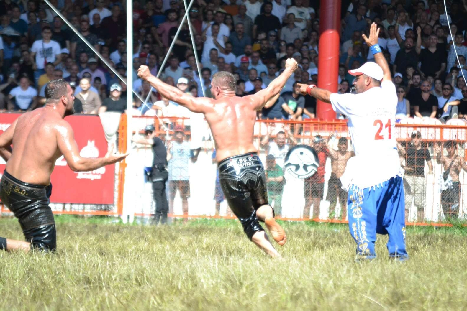 Edirne'de bu yıl 662'ncisi düzenlenen tarihi Kırkpınar Yağlı Güreşleri'nin 3'üncü gününde Er Meydanı'nda düzenlenen kura çekimi sorucunda başpehlivanlık yarı final müsabakalarında İsmail Balaban ile Hüseyin Gümüşalan, Mehmet Yeşil Yeşil ile Yusuf Can Zeybek güreşti.