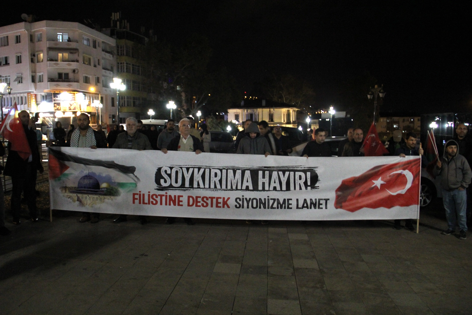 Edirne'de Saraçlar Caddesi'nde toplanan bir grup "Kahrolsun İsrail" ve "Aksa tufanı İsrail'i yakacak" sloganları atarak Selimiye Meydanı'na kadar yürüdü.