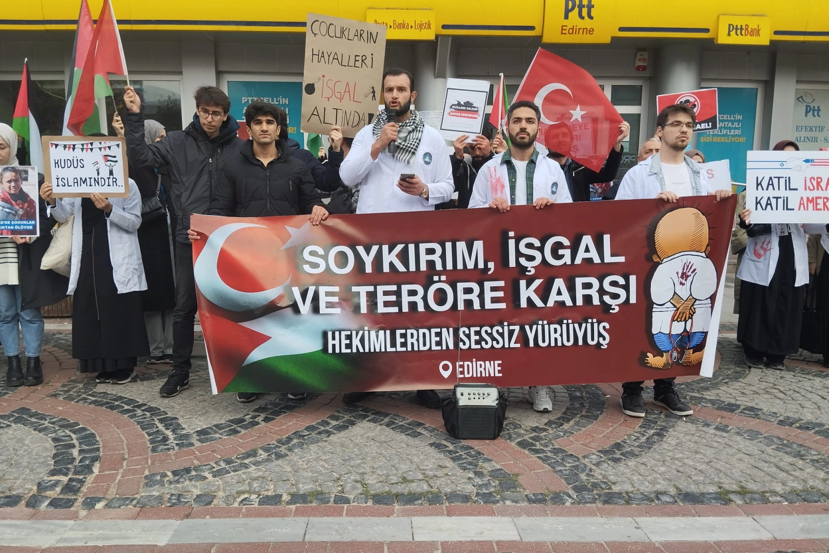 Trakya Üniversitesi Tıp Fakültesi öğrencileri ve sağlık çalışanları İsrail’in Gazze işgalini her hafta yaptıkları sessiz yürüyüş ile protesto ediyorlar.