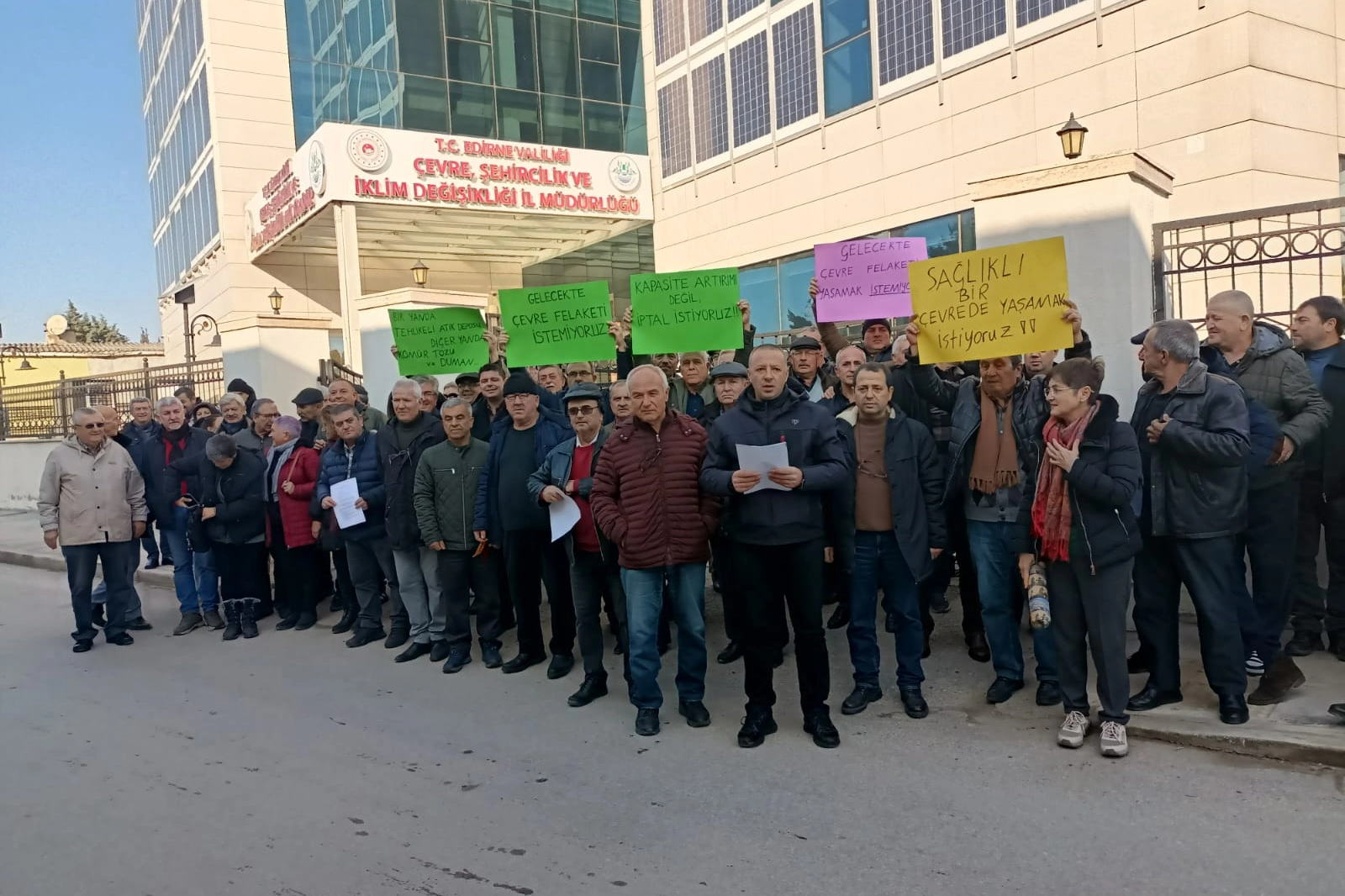 Edirne’nin Süloğlu ilçesine bağlı Geçkinli köyünde yaşayan vatandaşlar, bugün Çevre, Şehircilik ve İklim Değişikliği İl Müdürlüğü önünde, bölgede planlanan kömür ocağı ve kırma eleme tesisi kapasite artışı projesine karşı basın açıklaması yaptı.