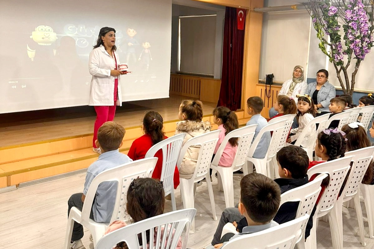 Eğitim sırasında ağız ve diş temizliği, özel bir maket üzerinden uygulamalı olarak anlatılarak doğru fırçalama teknikleri gösterildi.