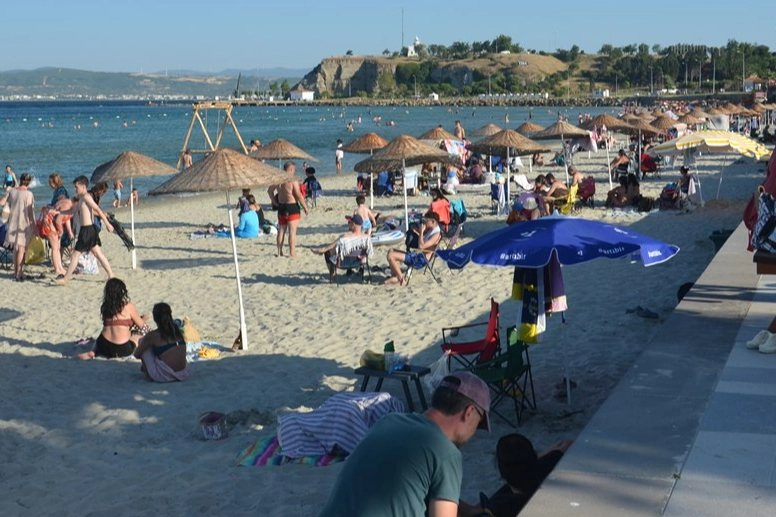 Almanya'dan memleketi Gelibolu'ya gelen Tanju Serdemir, havanın sıcak olması nedeniyle plajda yer aldıklarını belirterek, "İnanılmaz bir sıcak var. Rüzgar estiğinde sıcağı adeta insanın üzerine kaplıyor." dedi.