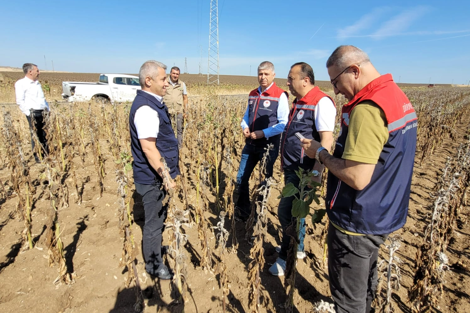 İl Tarım ve Orman Müdürlüğünden yapılan açıklamaya göre, Erdem ve beraberindekiler, kuraklık ve aşırı sıcakların etkilediği ayçiçeği tarlalarında incelemede bulundu.