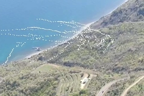 Öte yandan, Uçmakdere'de yamaç paraşütü yapan İmran Karabulut ise o anlara havadan tanıklık etti. Paraşütüyle gökyüzünde süzülen Karabulut, pelikanların hemen yanı başından geçerken, ortaya kartpostallık görüntüler çıktı.