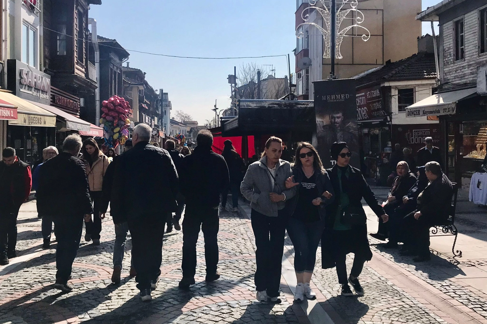 Özellikle trafiğe kapalı Saraçlar Caddesi'nde yoğun bir kalabalık oluştu. Güneşin tadını çıkarmak isteyen vatandaşlar, kafelerde oturarak veya alışveriş yaparak güneşin keyfini çıkardılar.