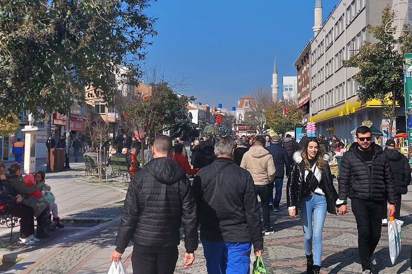 Edirne’nin trafiğe kapalı Saraçlar Caddesi’nde bugün yoğunluk yaşandı. Vatandaşlar güneşin yüzünü göstermesi ile caddeyi doldurdu.