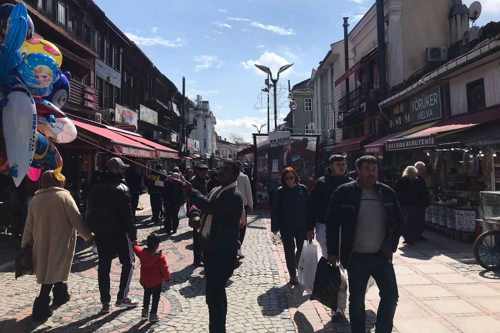 Edirne'nin Saraçlar Caddesi'nde Cuma günü yoğun bir kalabalık oluştu. Kentte bir süredir devam eden yağışlı havanın ardından bugün güneşli bir gün yaşandı ve Edirneliler dışarıya çıkmak için harekete geçti. Saraçlar Caddesi, trafiğe kapalı olması nedeniyle özellikle kalabalık bir hale geldi. Sokak çalgıcıları cadde de vatandaşlara keyifli anlar yaşattı.